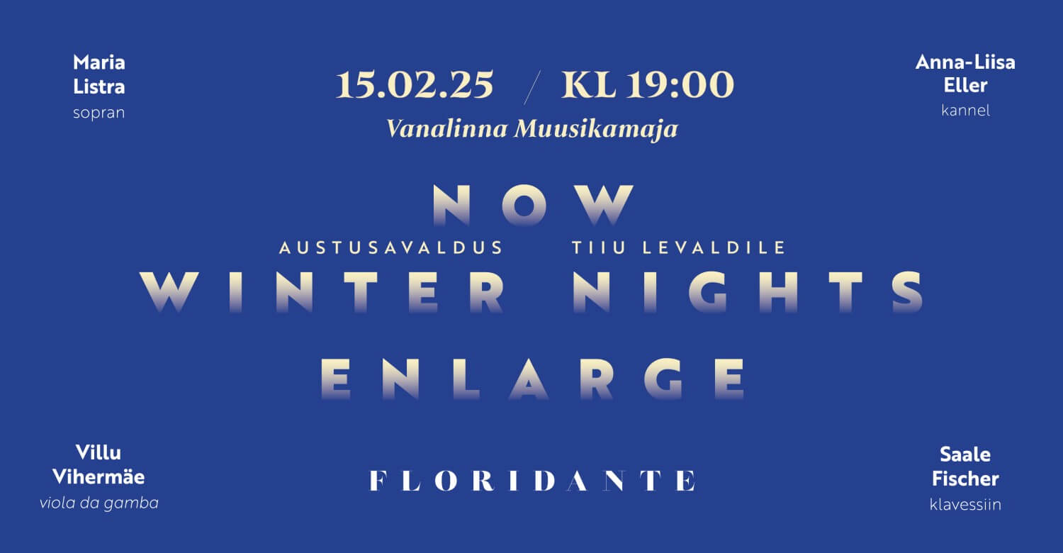 2023. aasta suvel, kui Floridante raudvara elik bassus continuum ehk Saale Fischer ja Villu Vihermäe koos Maria Listraga mööda Eesti maakirikuid tuuritas, astus meie juurde omaaegne pioneer-vanamuusikasopran, pikaaegne hääleseadja ja tunnustatud laulupedagoog Tiiu Levald. Üdini liigutatuna äsjakuuldud kontserdist, avaldas ta soovi jätta Maria ja Floridante kätte oma varajase muusika noodikogu, et me sellest ükskord midagi esitaksime. Vahepeal on palju vett merre voolanud ning Tiiu ikka jälle helistanud, et me oma kontserdiga siiski enne maha saaksime, kui...