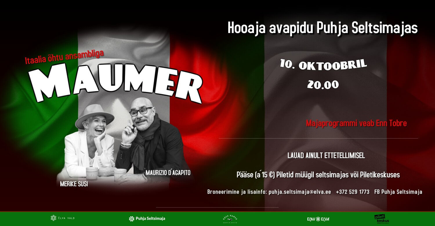 Lükkame Puhja Seltsimajas taas hooaja käima. Sellel korral kohtume ansambliga, kes toob õhtusse Itaalia hõngu - ansambel MAUMER!