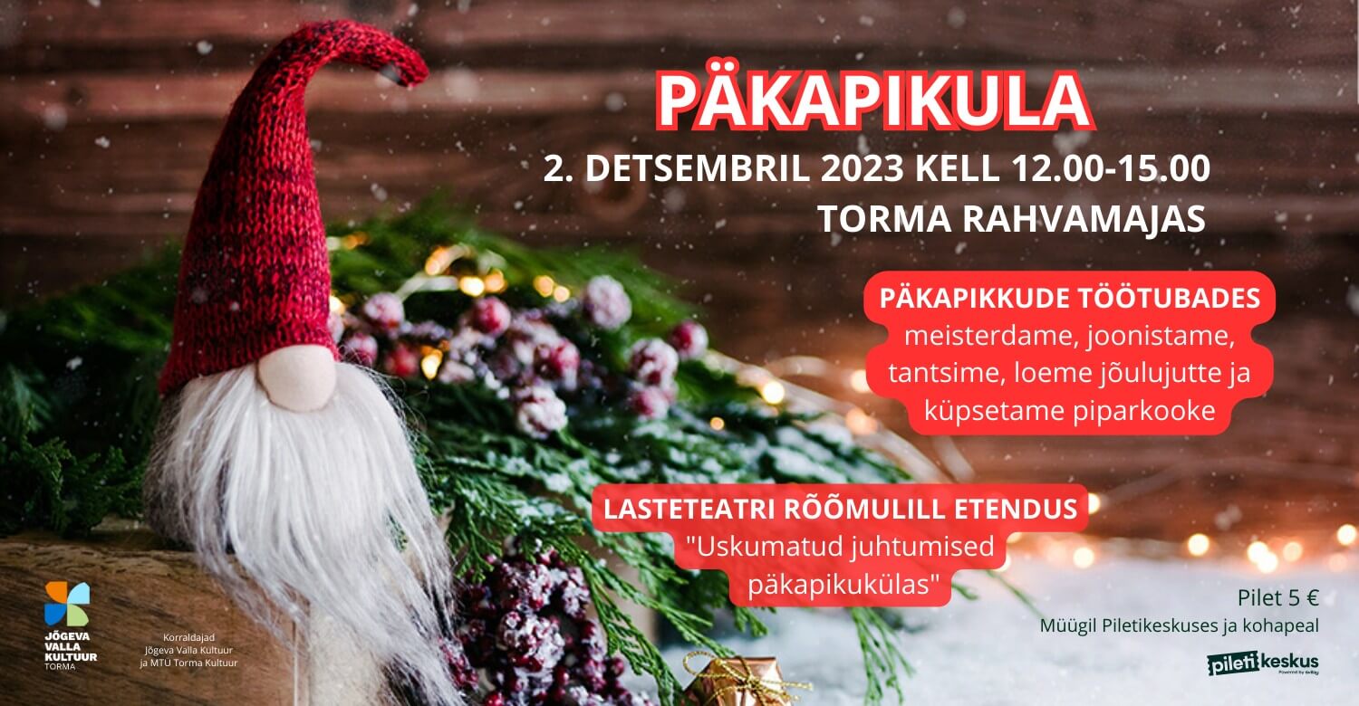 Kas hakkab vaikselt jõuluootus pugema hinge? Usinad päkapikud ootavad laupäeval, 2. detsembril kell 12.00 lapsi Torma rahvamajja, et koos lõbusalt trallida.