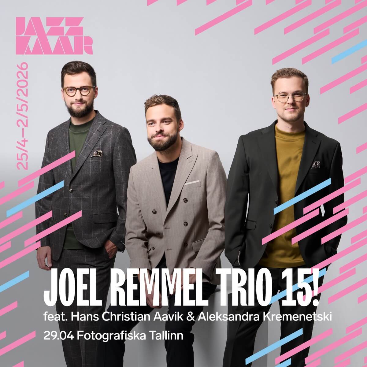 Päevapass sisaldab sissepääsu kõikidele 26. aprillil Von Krahlis ja Fotografiska Tallinnas toimuvatele Jazzkaar 2026 kontsertidele: