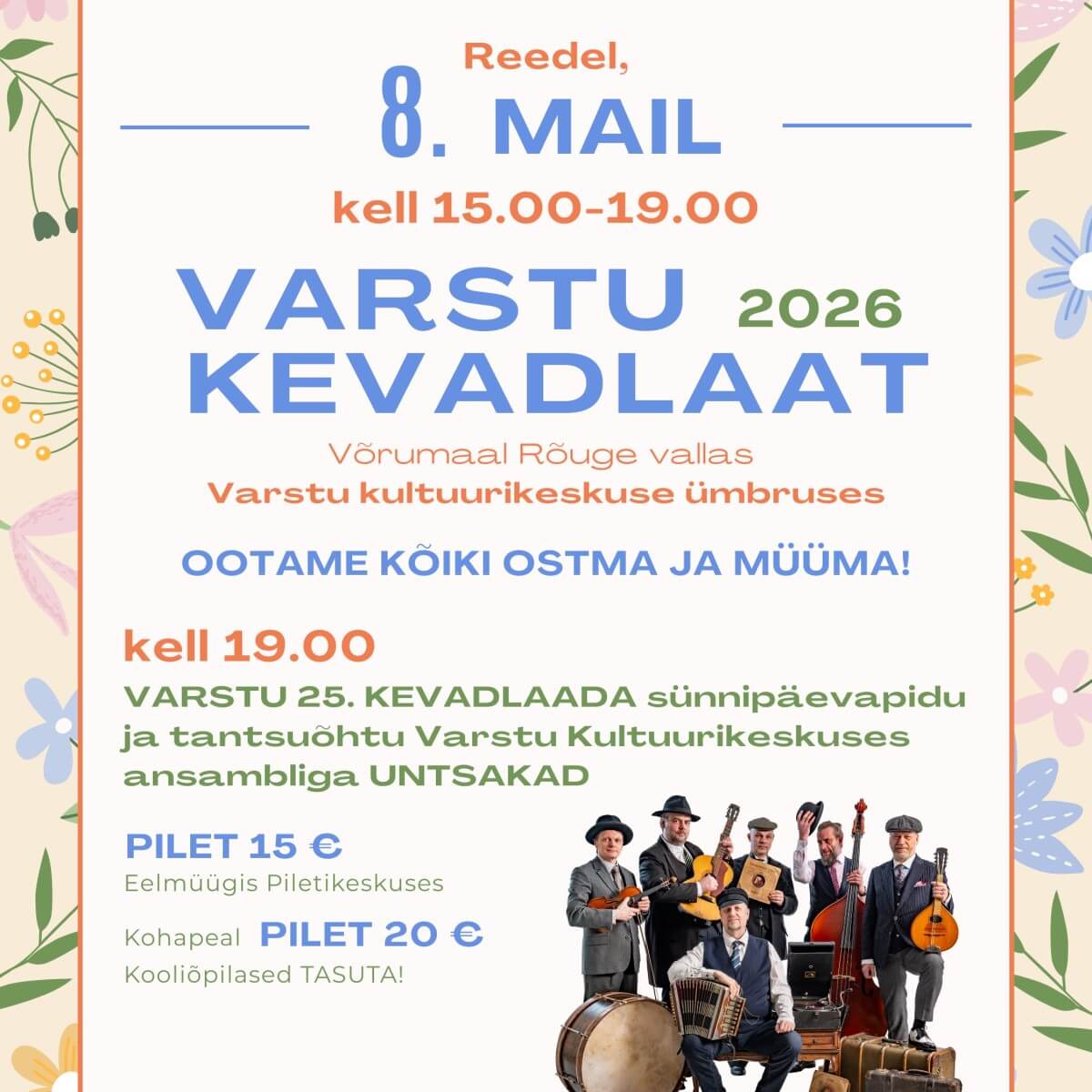 Varstu 25. kevadlaada sünnipäevapidu ja tantsuõhtu ansambliga Untsakad Varstu kultuurikeskuses