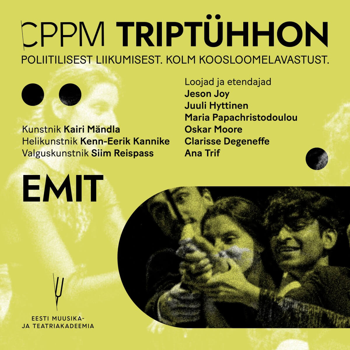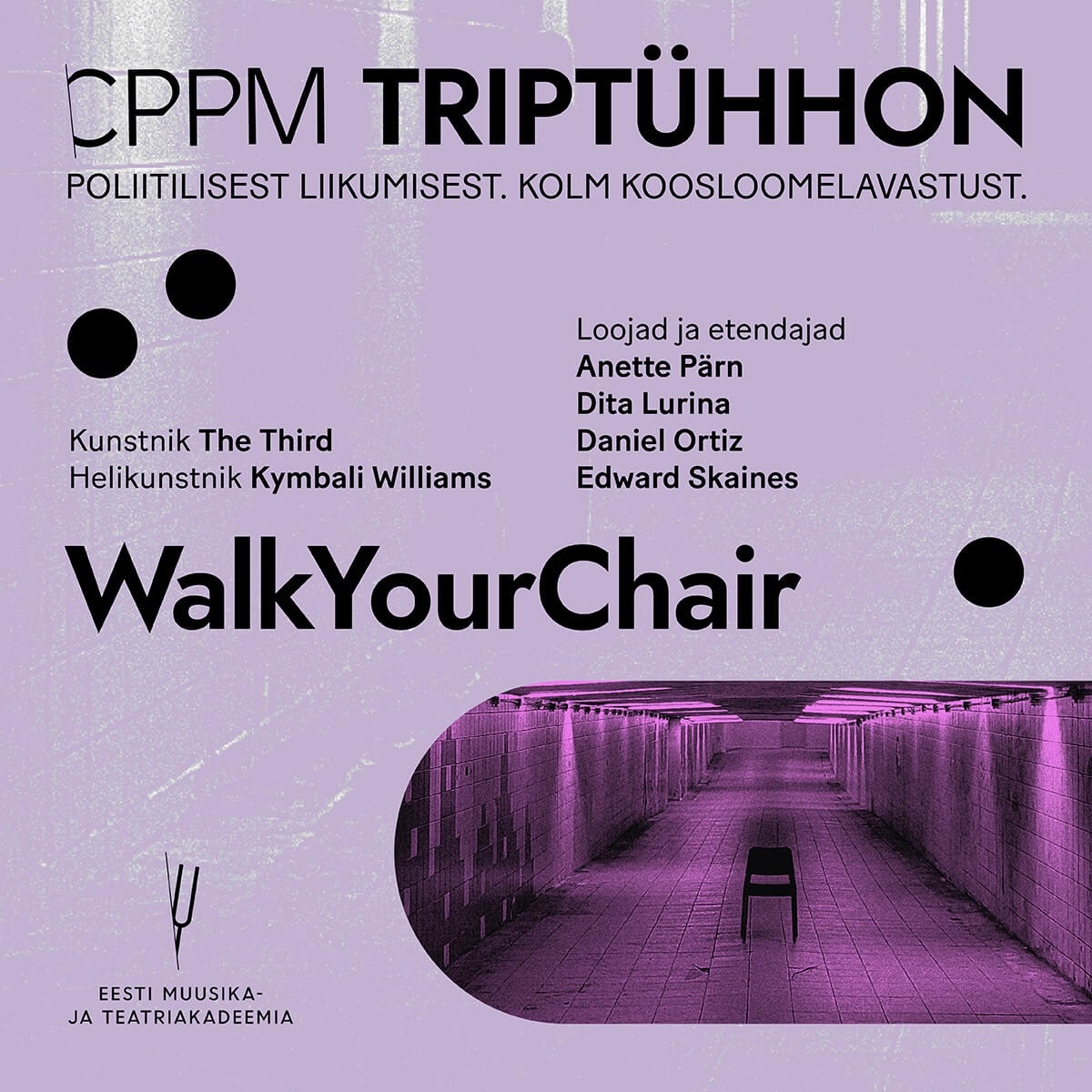 CPPM TRIPTÜHHON koondab ühte õhtusse kolm eriilmelist CPPMi koosloomelavastust “WalkYourChair”, „EMIT” ja „Öötöö“ (Night Watch).